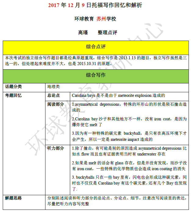 2017年12月17日托福考试听说读写全回忆