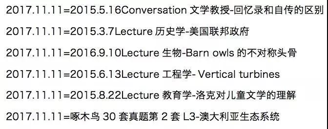 虽然ETS考试费收了不少,但人家出份试卷好贵的撒,所以之前的老题目还是可以再利用的。尤其是听力重复量最大,重复周期最小一次小于4个月。最狠的一次,双十一史无前例重复了六篇。